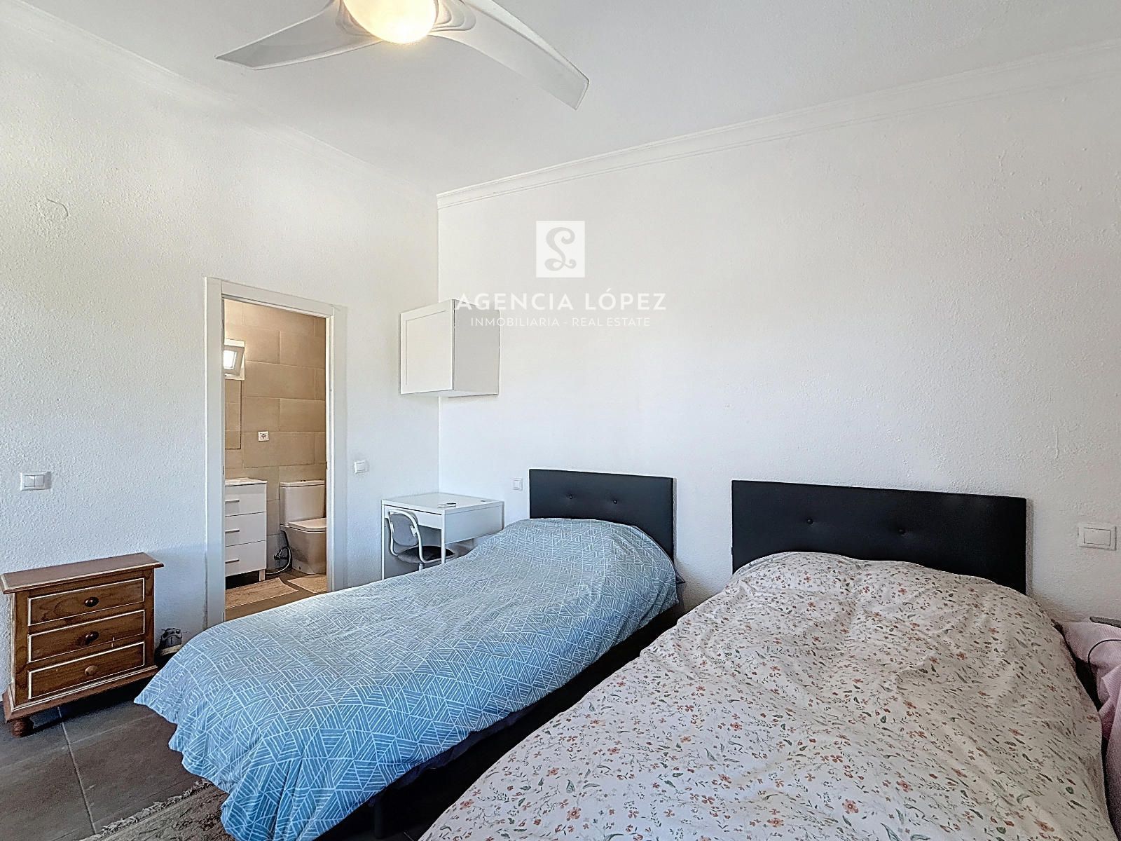 Dispone de un gran trastero donde podrán almacenar todo tipo de herramientas o diversos enseres. A La planta primera se accede mediante escaleras desde la terraza de entrada. Hay otra habitación doble en la parte superior, con acceso directo a una gran terraza privada. Está planta dispone de otro baño completo con ducha.